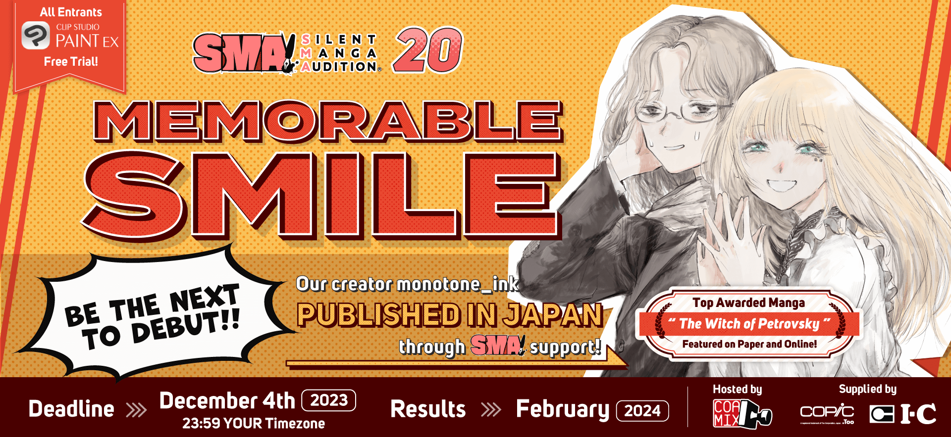 For students belonging to schools who have signed up for the contest, we are offering six months free of Clip Studio Paint EX for one device to create comic and illustration entries. Details on how to take advantage of this offer will be explained in the school registration confirmation email.