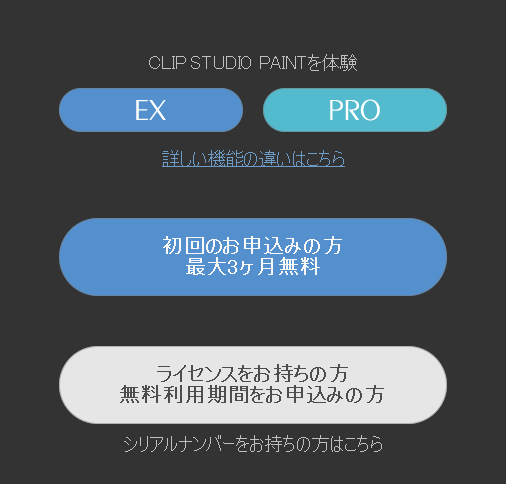 3. 「PAINT」をクリックすると、CLIP STUDIO PAINTが起動します。